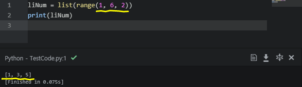 1에서 5 사이의 정수이기 때문에 직접 정의하는 방법도 나쁘지 않다. 하지만, 극단적으로 늘어나는 범위의 원소를 갖는 리스트의 정의가 필요할 때, 위 그림과 같은 방법은 결코 좋은 방법이 될 수 없다.