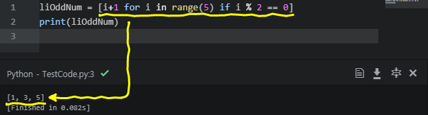 그럼 여기서, 주어진 범위 안의 값 중 홀수의 값만 원소로 갖는 리스트를 생성한다는 조건을 추가해보자.