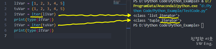 위 그림과 같이 iter() 함수를 사용하면 이터레이터를 얻을 수 있다.